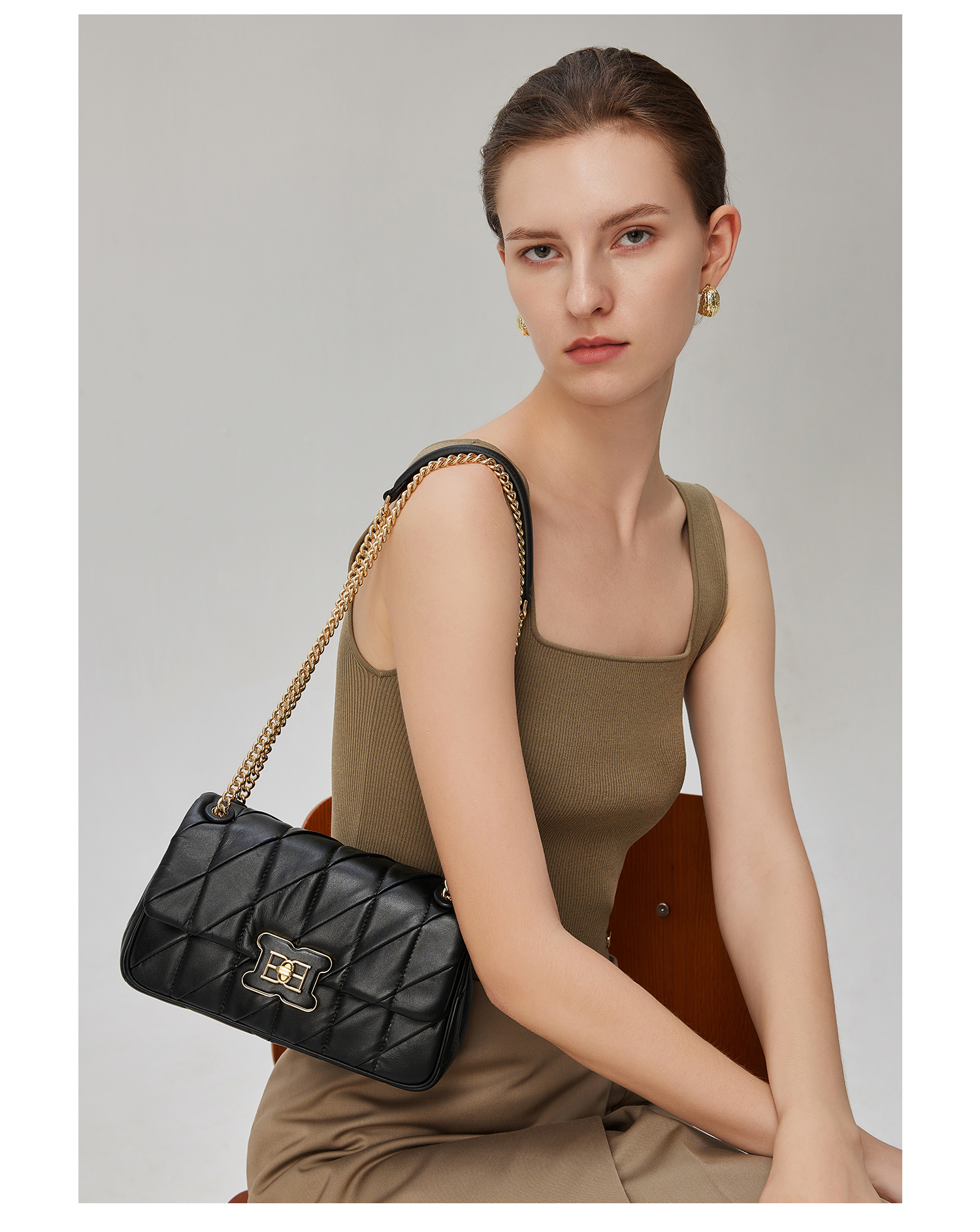 Women's chain bag rhombic leather one shoulder underarm bag